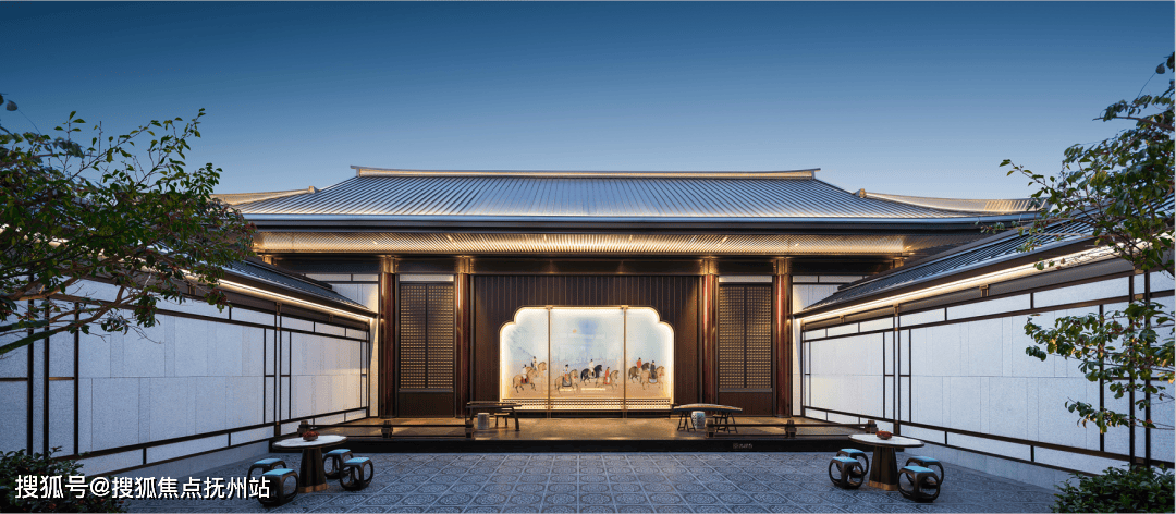 居山水观天地,是中国人的最高理想,漫御道而行,入院即是入画,叠山理水,层层递进,舒展青绿山水画境。