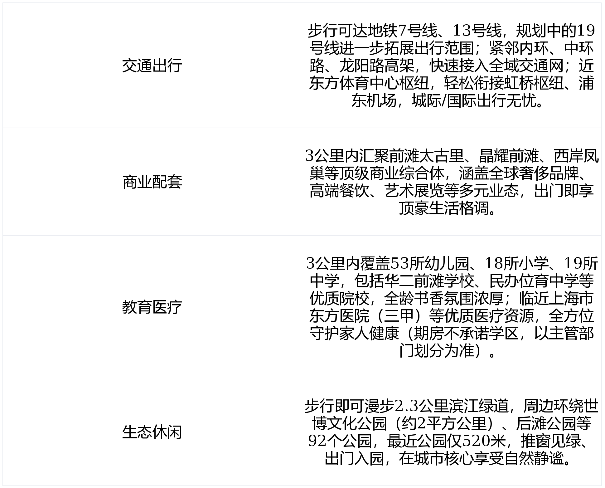 :项目雄踞后滩滨,隶属上海“一江一河”战略核心承载区,与前滩国际商务区、陆家嘴金融城构成“新黄金三角”,坐享三大板块产业、人才、商业资源辐射,是上海未来滨江价值新高地。