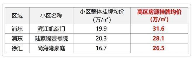 · 陆家嘴壹号院整体挂牌均价20.3万/㎡,高区江景房却要28.1万/㎡;
