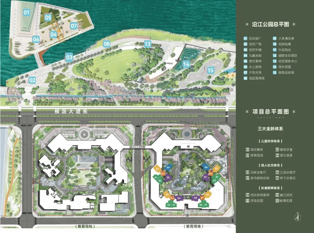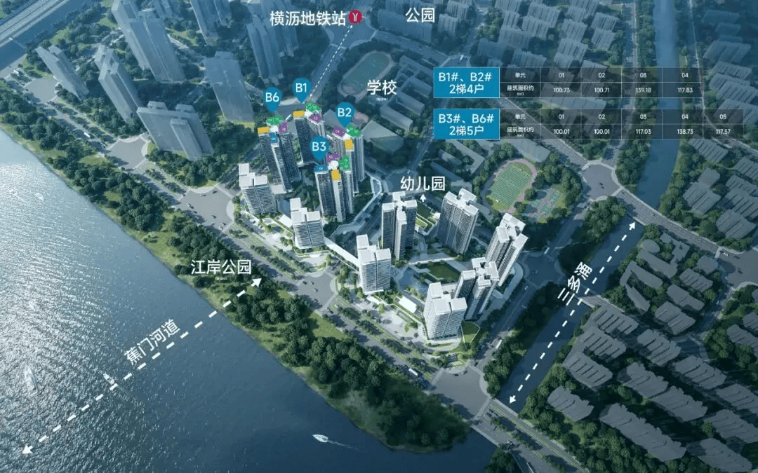 项目周边规划有 7.8 公里滨江景观带,目前已建成 3.5 公里并对外开放,景观带内设置了跑步道、骑行道、亲水平台、休憩座椅等设施,成为业主日常休闲、健身、散步的好去处。此外,项目距离灵山岛尖儿童公园约 2 公里,距离横沥岛中央公园约 1.5 公里,这些城市公园植被丰富、空气清新,是天然的 “城市绿肺”,为业主提供了优质的户外活动空间。