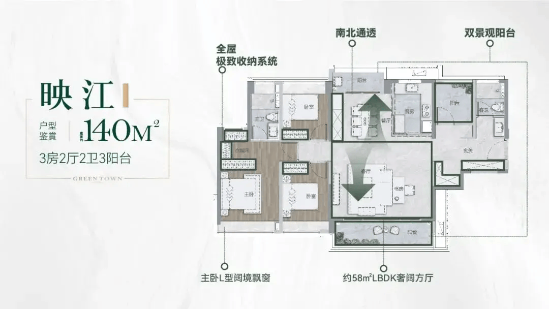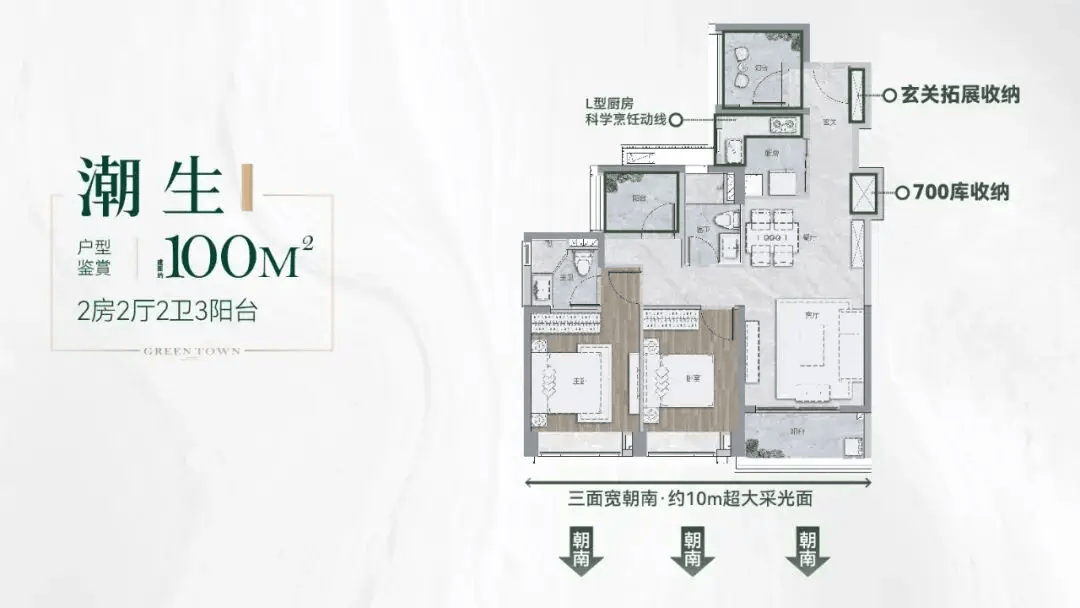 绿城桂语汀澜主推建面约 100-140㎡南向三至四房,户型设计充分考虑了广州气候特点与家庭居住需求,具有 “南向采光、南北通透、动静分区、空间利用率高” 等优点。