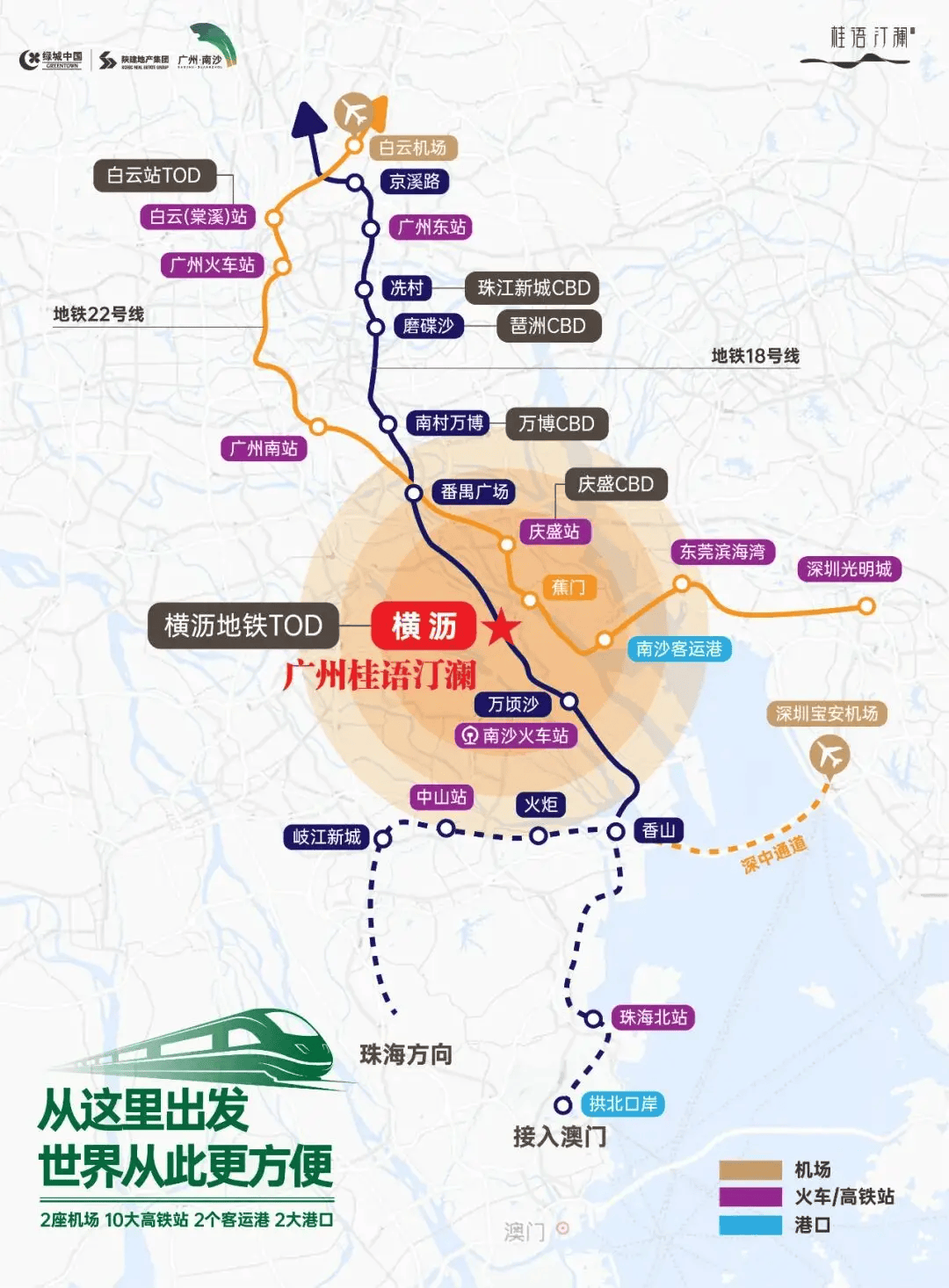 项目距地铁 18 号线 分钟即可抵达。地铁 18 号线作为广州 “最快地铁”,采用市域 D 型列车,设计时速高达 160 公里,是连接南沙与广州中心区的快速通道。从横沥站出发,快线 分钟直达珠江新城核心区冼村站,慢线 分钟覆盖天河、海珠等主要商圈,线 分钟通勤圈”,让业主既能享受岛居生态,又能高效链接城市繁华。