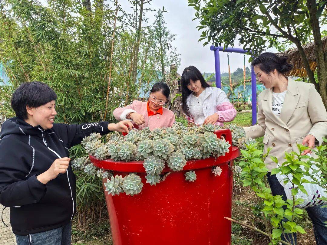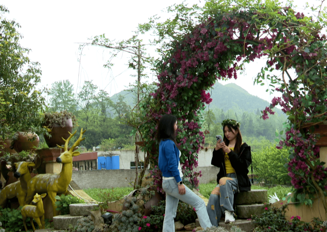 今年,“普源里”民宿一方面通过短视频等方式,线上线下推介凉爽气候与特色文旅资源;一方面加强环境氛围营造,在“文创展示园”和宽敞的草坪周围培植多肉、蔷薇、绣球花等,让这里长期鸟语花香,游客体验感十足。