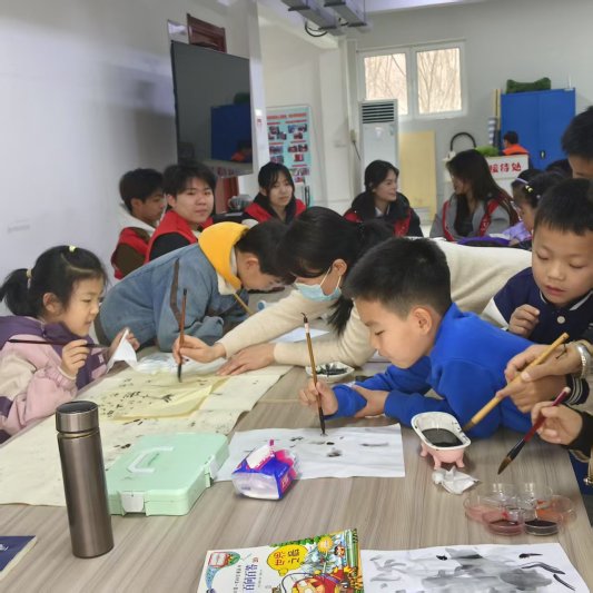 依托“护苗成长”目标,社区将寒暑假托管升级为“阳光成长营”,由大学生志愿者与社区人员组成“护学联盟”,为孩子提供多元成长空间。寒假期间,21名孩子在营中完成作业辅导与国画体验;暑假则通过“闯关打卡”背古诗、解数学题等方式,提升学习兴趣。成长营不仅是“看娃点”,更是“成长孵化器”,帮助孩子养成自主学习习惯,领悟“耐心”“专注”的文化内涵。