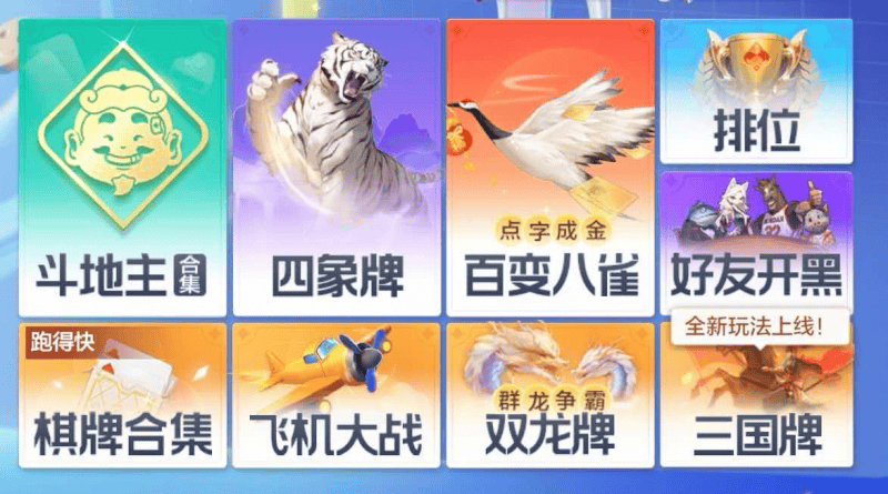 除了常规的斗地主对局,游戏里现在可是热闹非凡。不仅有棋牌类的《三国牌》《四象牌》《百变八雀牌》等新玩法,还陆续推出了不少轻松好玩的新内容,涵盖“休闲闯关”、“聚会开黑”等多种类型,不管你是喜欢独自闯关,还是爱和朋友组队开黑,基本都能在这儿找到对口的玩法。
